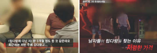 단란주점과 사창가 등지에서 일을 했다던 한 여성은 “단란주점 등에서 일할 때 벌었던 수입과 립다방에서 버는 수입이 달랐기 때문에 과거에는 그곳에서 일하지 않았다”면서 “하지만 성매매를 할 수 있다면 또 다른 서비스로 돈을 벌 수 있다면 굳이 립다방에서 일하지 않을 이유가 없다”고 말했다.